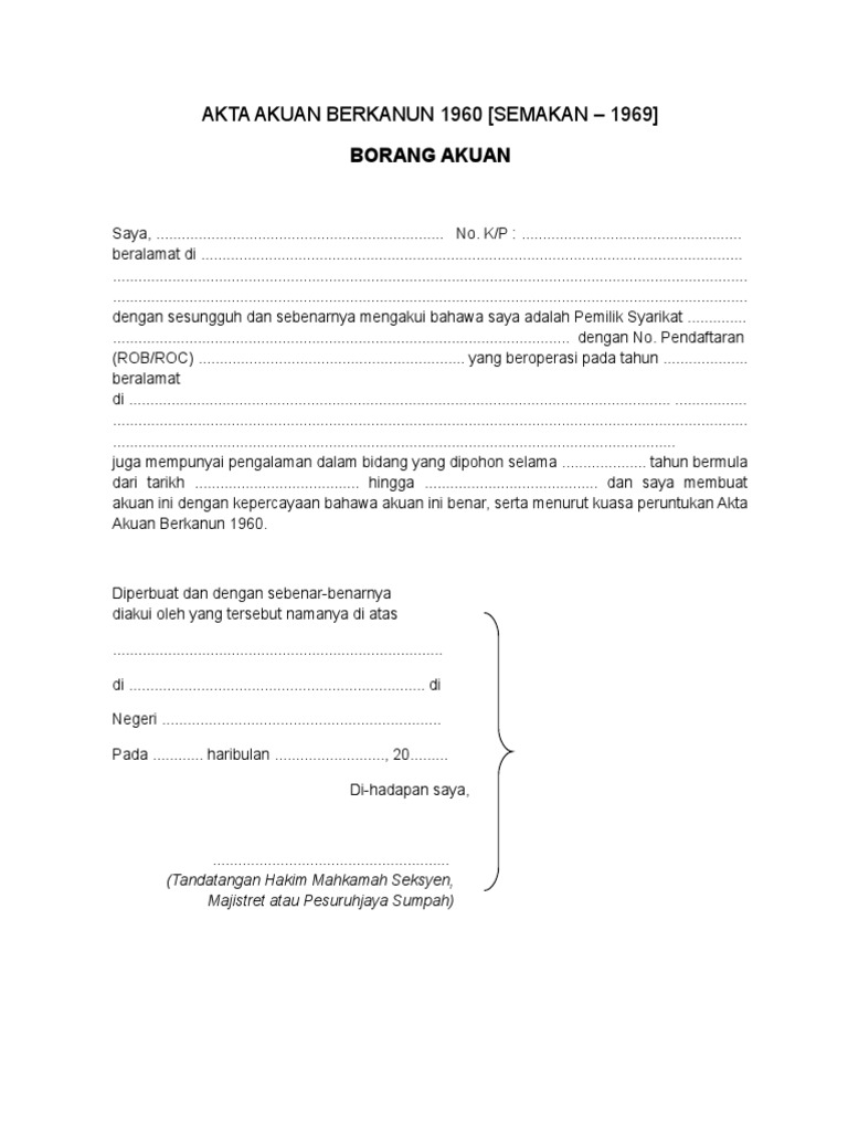 7 Borang Akuan Sumpah 1 Mempunyai Syarikat Perniagaan Sendiri Doc Google Drive