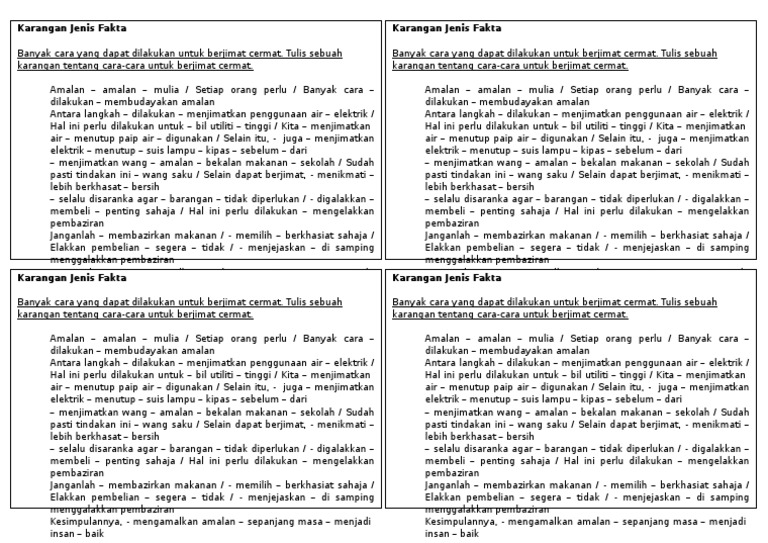 Kemahiran Menulis Karangan Pilihan Langkah Berjimat Cermat