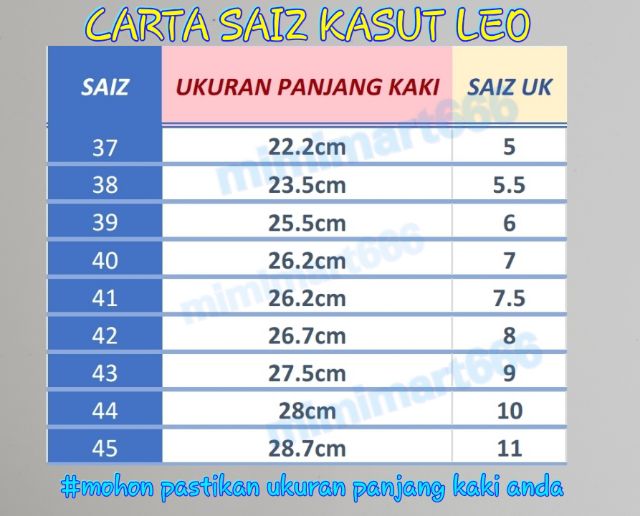 Kasut Online Ukuran Kasut