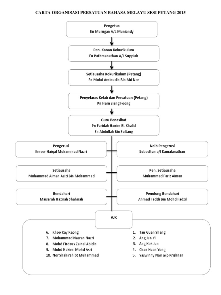Carta Organisasi Persatuan Bahasa Melayu Sesi Petang 2015