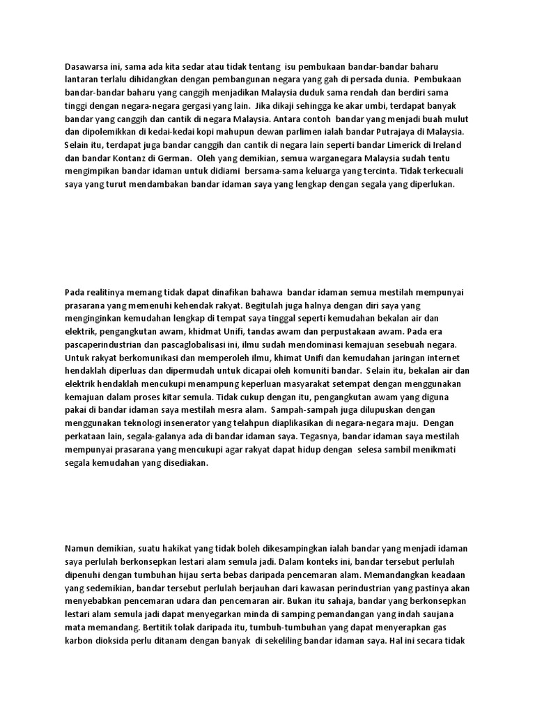 Contoh Karangan Spm Ciri Ciri Bandar Pintar