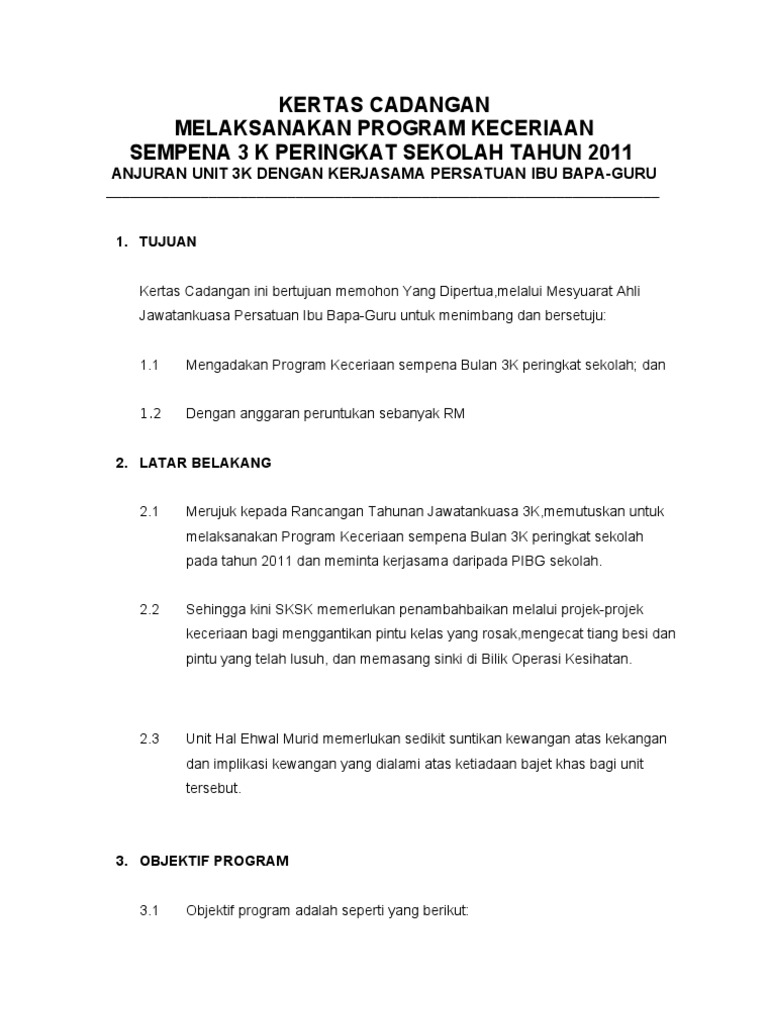 Format Kertas Cadangan Proposal Kertas Kerja