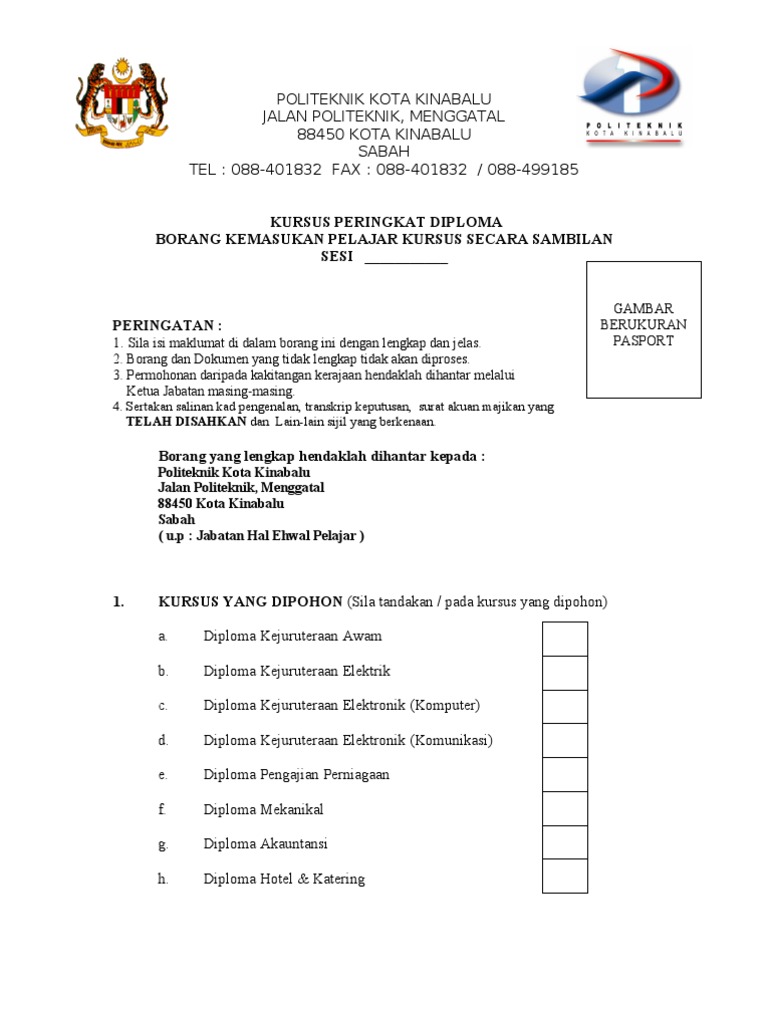 Senarai Kursus Yang Ditawarkan Di Politeknik Kota Kinabalu Sandakan Dan Tawau Sabah Pendidikanmalaysia Com