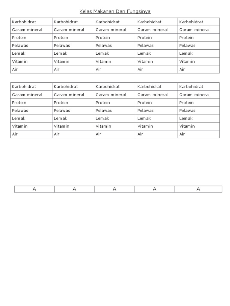 Kelas Makanan Dan Fungsinya Match