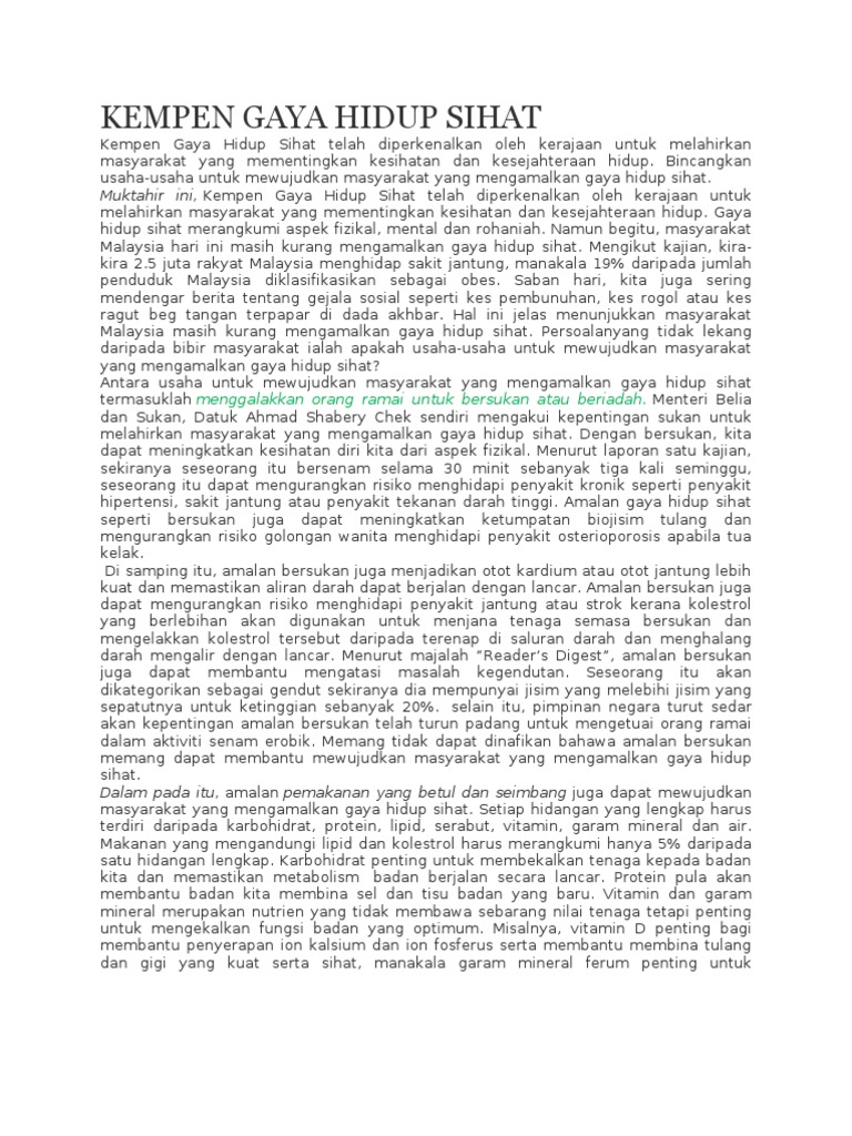 Kempen Gaya Hidup Sihat Telah Diperkenalkan Oleh Kerajaan