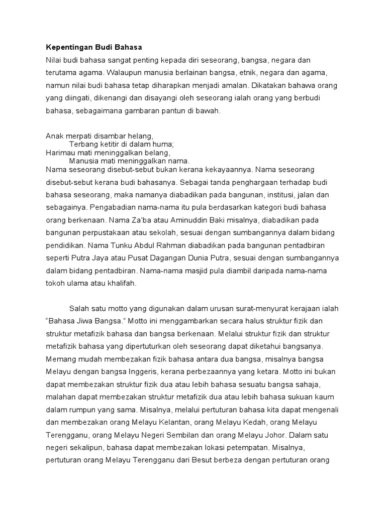Kepentingan Amalan Berbudi Bahasa Dalam Kalangan Masyarakat Doc Document