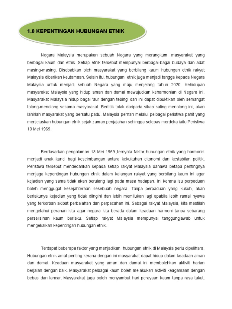 Kepentingan Hubungan Etnik Di Malaysia Docx Antara Kepentingan Kajian Hubungan Etnik Dalam Konteks Negara Malaysia Ialah Pertama Dari Segi Ekonomi