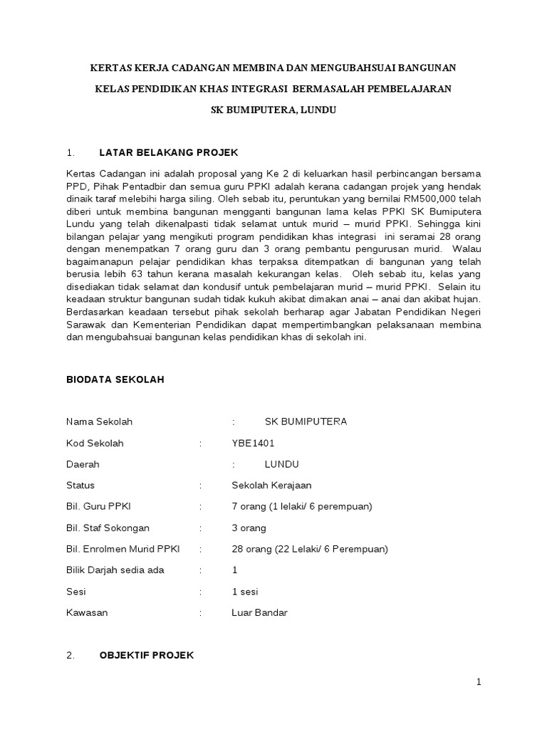Kertas Cadangan Contoh Kertas Kerja Projek Pembinaan