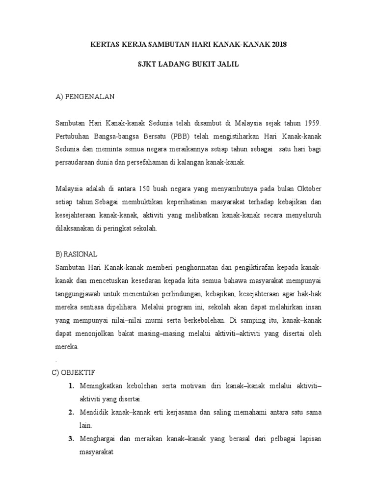 Doc Kertas Kerja Sambutan Hari Kanak Kanak 2015 Wan Norzakiah Academia Edu