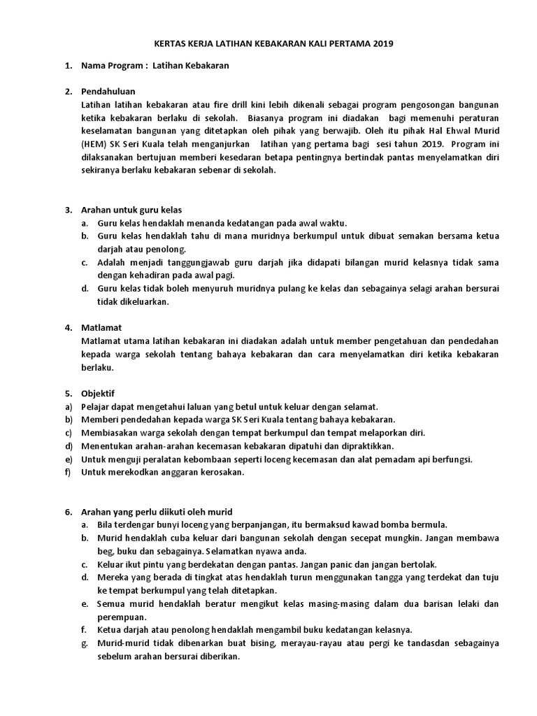 35384099 Kertas Kerja Program Kebakaran Sekolah Pages 1 5 Text Version Anyflip