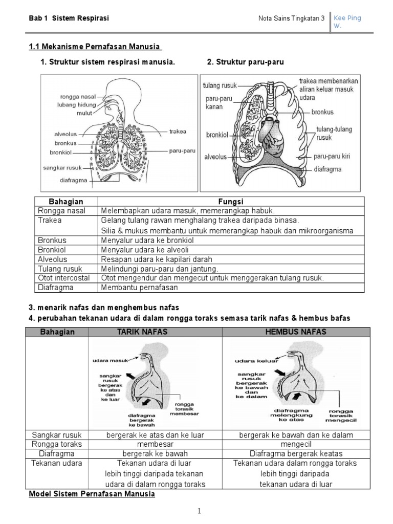 Sains Tingkatan 3 Sains Bab 1 Mekanisme Pernafasan Manusia