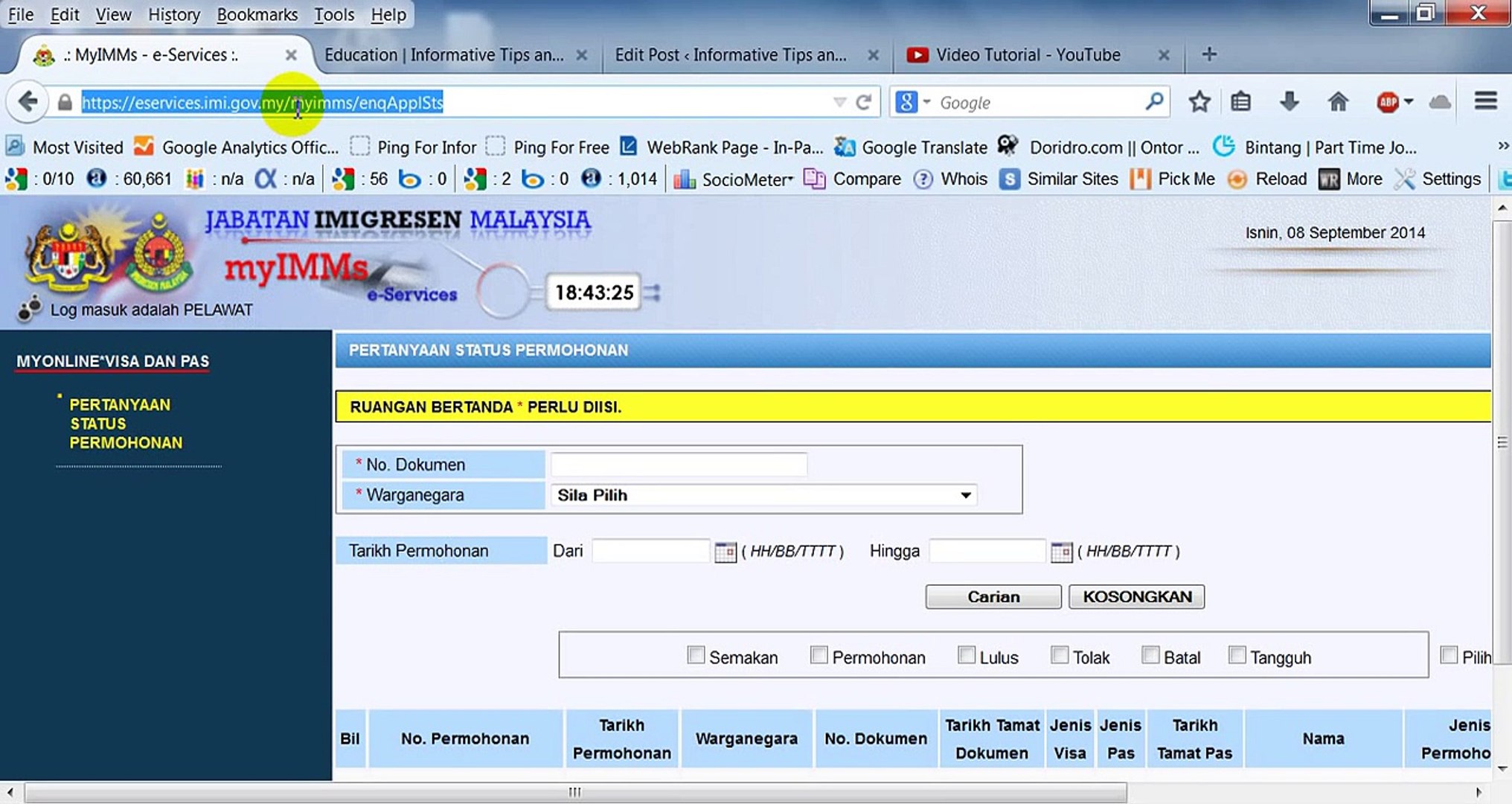 Myimms e service 2018. Application received application is received. Kenyataan media inisiatif pra pelepasan memudahkan jemaah haji 2018 07 mei 2018 tuesday 08 may 2018 kenyataan media imigresen serbu pusat hiburan kalung bunga 27 april 2018. Myonline foreign maids foreign workers. Myonline permit adalah satu kemudahan permohonan permit masuk secara atas talian.