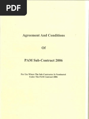 Page 1 Agreement And Conditions Of Pam Sub Contract 2006 For Pdf Document