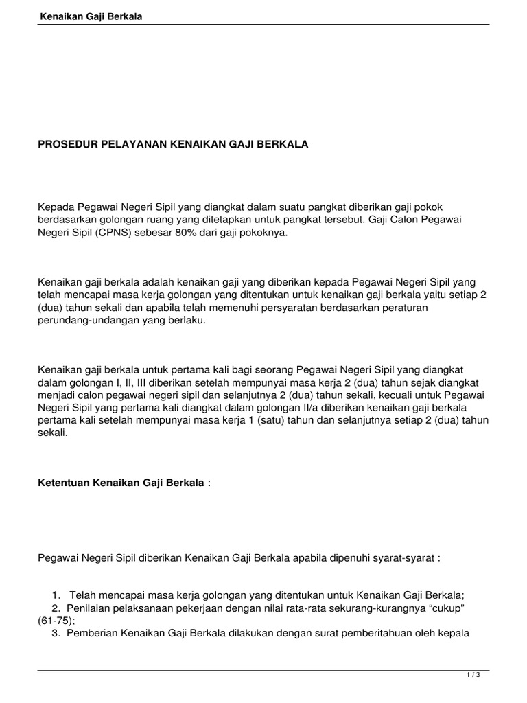 Contoh Surat Pengantar Usul Kenaikan Gaji Berkala Bagi Cute766