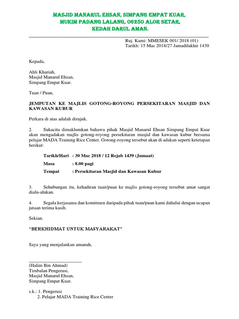 Contoh Surat Rasmi Gotong Royong Rasmi F