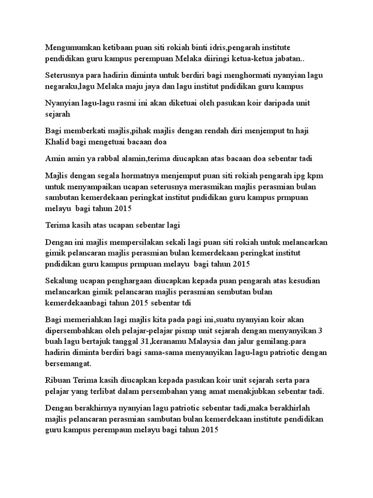Doc Teks Pengacara Majlis Sambutan Bulan Kemerdekaan Anisa Syahida Academia Edu